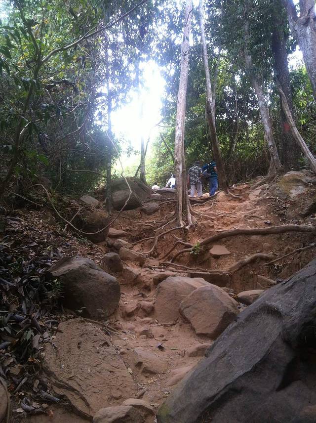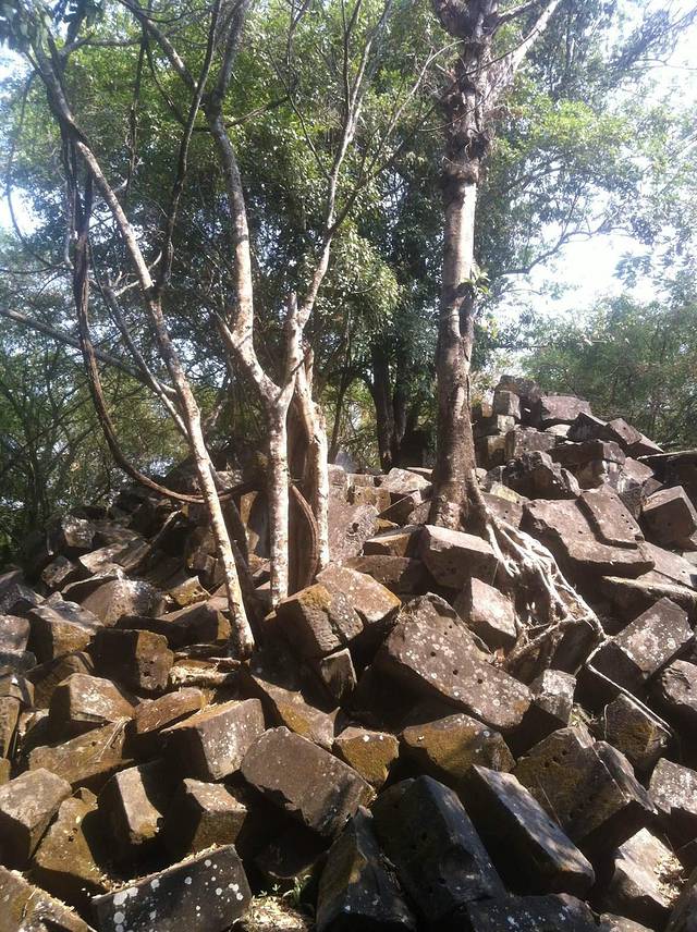 高布斯滨在吴哥城的东北面大约50公里,路不是太好,女王宫开车过去用了大半个小时。高不斯滨是暹粒河的源头,在荔枝山的东北部,片原始丛林,山路有些难走,有的时候甚至要手脚并用,上山下山同一条路共用了2个小时,还是很累的。所以,去高不斯滨值不值得也是见仁见智的。