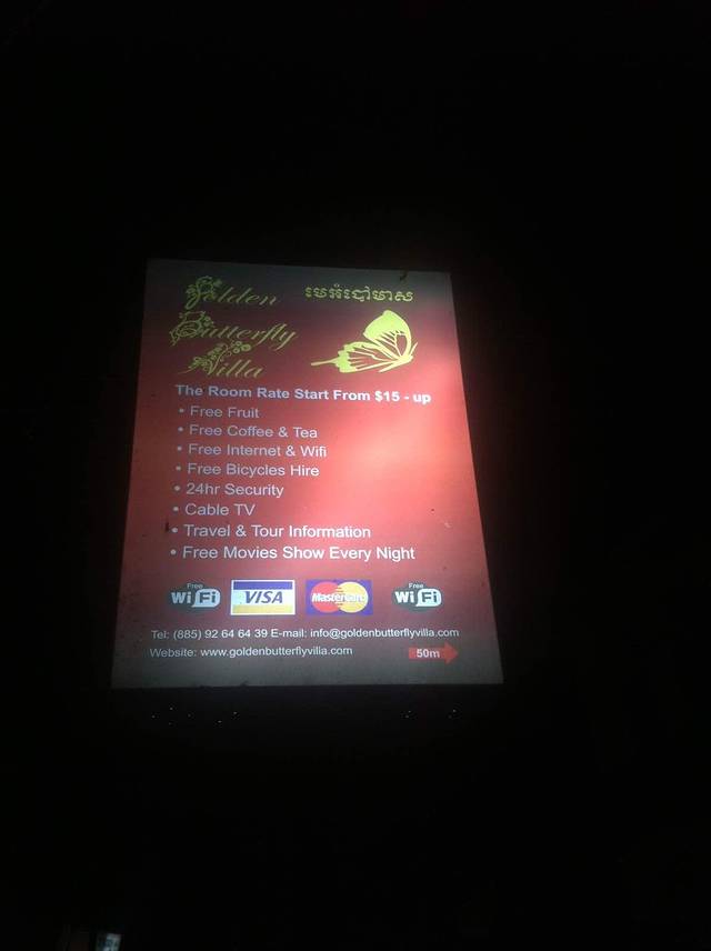 网上很热门的金蝴蝶旅馆,房间经济实惠卫生,有攻略说它的餐厅也很不错,所以我们在暹粒的最后一顿晚餐就在这里解决了