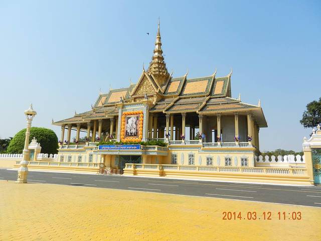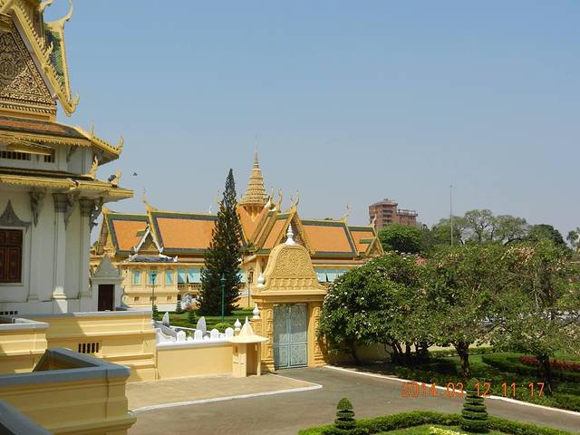 王宫对着洞里萨河边广场的门,看上去像国王检阅的地方