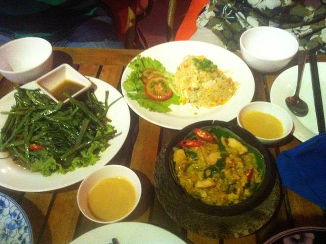 Amok鱼,炒饭、还有空心菜