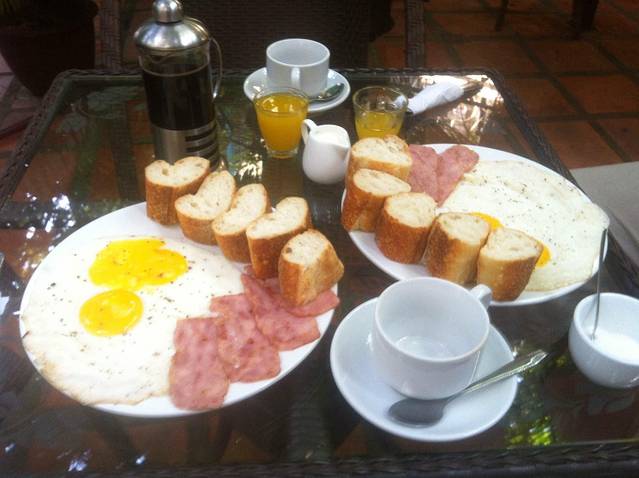 小旅馆的法式早餐,咖啡不错,法棍硬的可以防身