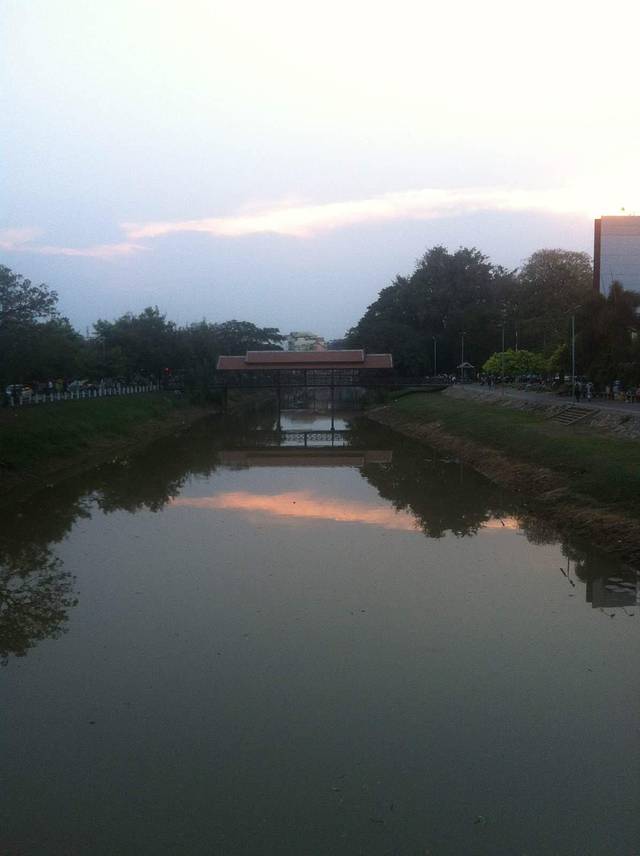 老市场南面的小河,落日余晖