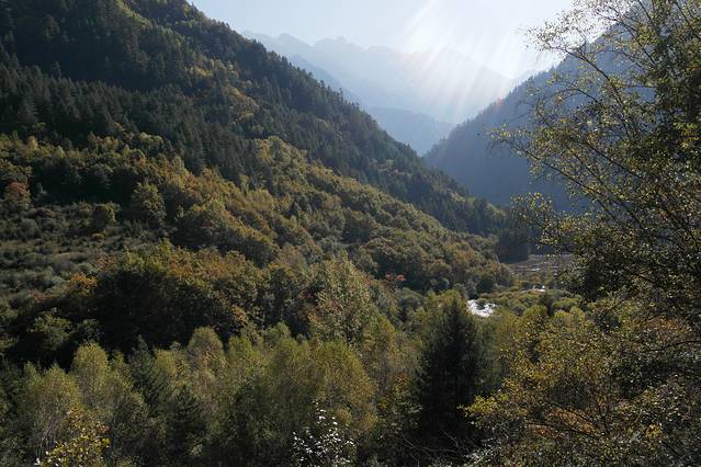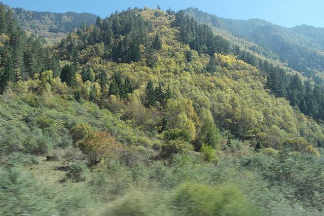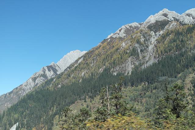 中午在诺日朗中心吃了自助餐,乘车前往长海和五彩池,一路上美景层出不穷.