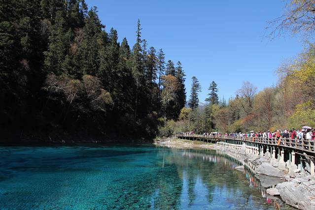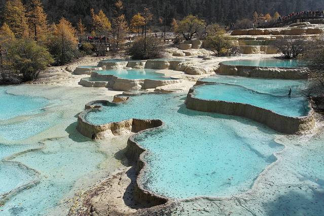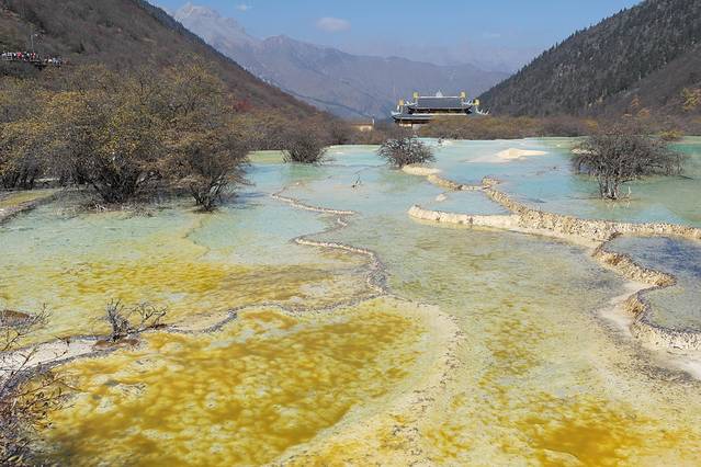 黄龙旺季门票200,上行缆车80,很多人觉得黄龙不值就选择不去.但是金秋时节的黄龙还是有其一番独特的风味的,值得一玩!