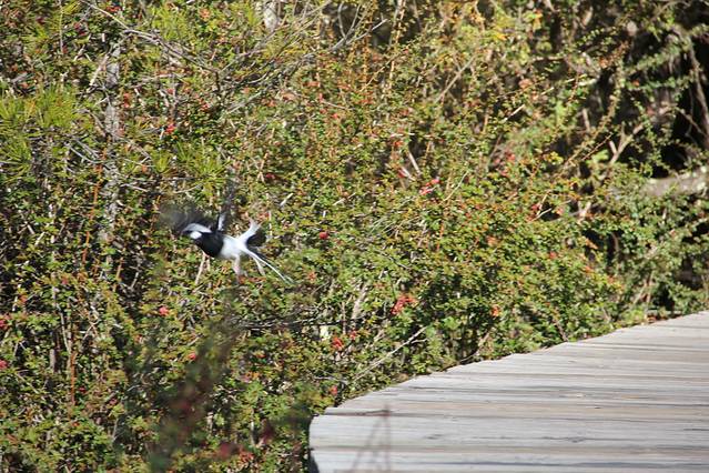 走在游客寥寥的栈道上,溪流源源不断从身边流过,小鸟也尽情在这边土地上飞翔,彩林一直陪伴着我们.