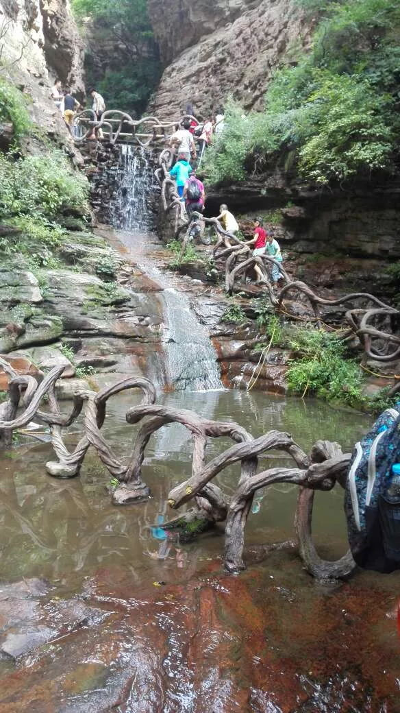 一直往上走,便是情人谷,九曲十八弯,碧水连天。一路攀爬,不一会就到了牛郎故居和织女庙了,织女庙背后便是牛郎织女雕像。乍一看,似乎没什么,后来绕到山峰背后,才看出了不凡。那座山自然的形成了牛郎织女相望的态势鬼斧神工。在自然的基础上,对整个山头进行雕刻,巧夺天工。在这个雕塑之下,拜拜织女庙,自然灵验。