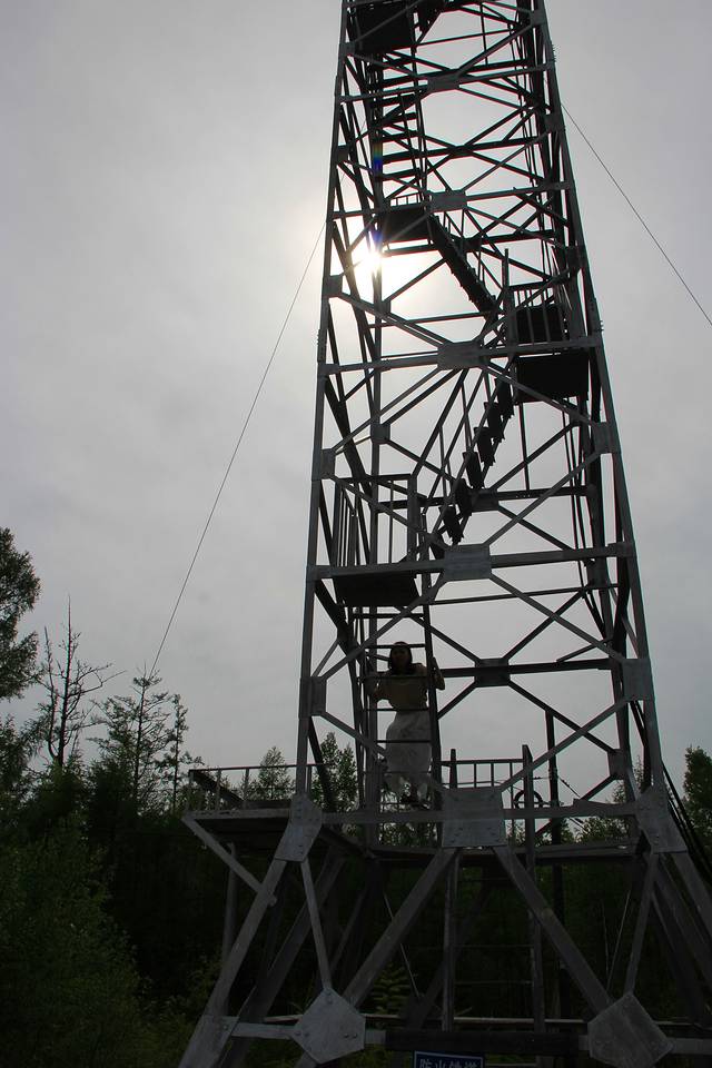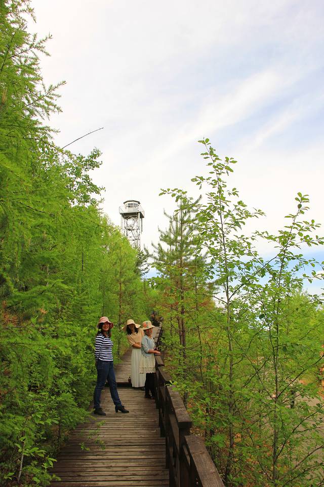 车子刚停靠下来,我就一溜烟跑到了木头围成的观景台上,老毕说,如果不恐高可以爬上瞭望塔看全景。二十多米高的瞭望塔,一步一步慢慢往上爬,越往上越感觉摇晃。
