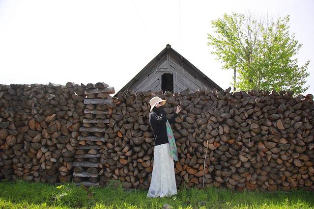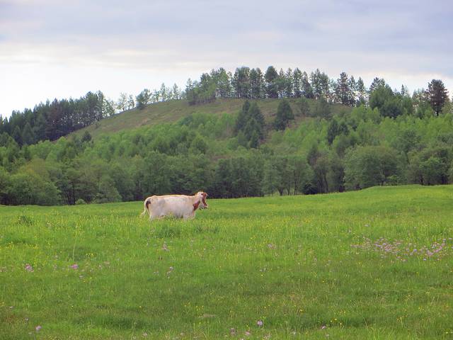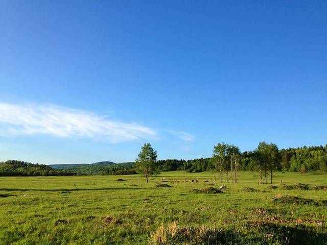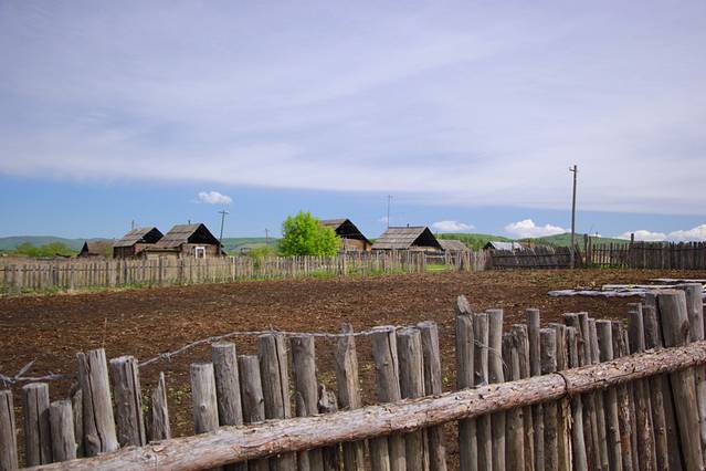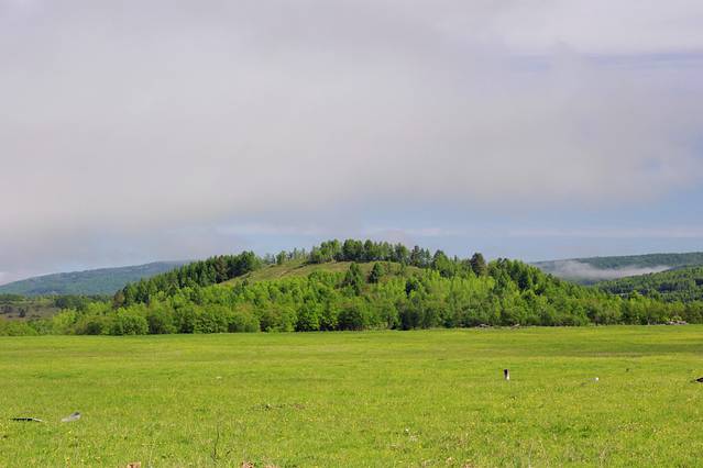 到过奇乾的人对她的评价都很两极分化,在莫尔道嘎下雨的时候原生质蜀黍跟我说:“你最好祈祷能够放晴,不然奇乾会大打折扣。”我们无疑是幸运的,雨在未到奇乾的时候就已经停止了。等到老毕将车子停靠在木刻楞前面,整个奇乾就映入了眼帘,三面临山,一面临水。娜莎家前面是一片开阔的草地,被山头包围着,几头牛在上面悠闲地吃着草,几棵树伫立在空旷的草地上,整个奇乾被翠绿色笼罩着。