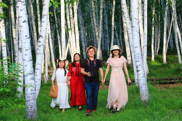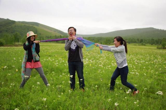 我喜欢用我最喜欢的卡通形象“哆啦A梦”来形容他,他真的是无奇不有,无所不能。只要我们请求的,他都竭尽全力去满足,来自南方的小伙伴从未看过雪,他就带着进入森林腹地去找雪;端午节大家想吃粽子,他就能从车上拿下一袋糯米;有人想吃鱼,他就带着大家去额尔古纳河捕鱼;到了客栈发现没有热水洗澡,客人实在忍受不了要求换地方,他二话不说拉着找另外一家;我们想要拍婚纱照,他就带着我们到一个满是花丛的山坡;有人过生日,他会掏钱买一个蛋糕庆祝……