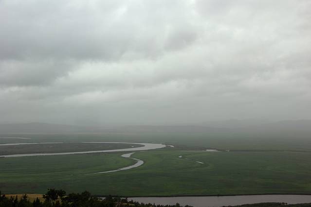 中午到达莫尔道嘎镇的时候淅淅沥沥下起了雨,我们分头行动,陈哥哥跟着老毕去市场买晚上在奇乾篝火晚会的东西,我们去了姐妹饭店点餐。饭后,补齐了东西,继续往奇乾赶去。我在微信上向原生质蜀黍抱怨了下天气,手机瞬间就没有了信号,只好放下欣赏着路旁的风景。