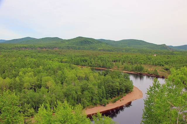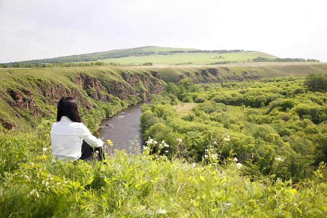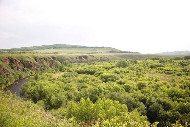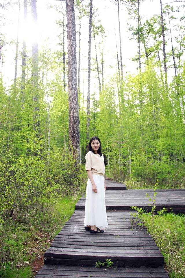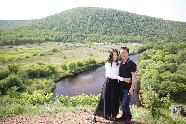 车子继续在林间道路上穿梭,不知道走了多久,月牙泡子到了,老毕说爬上山头俯瞰,风景会更美。我穿着长裙跟着陈哥哥爬了上去,水流弯弯,镶嵌在幽林之间,跟老鹰嘴的风景没有太大的区别。
