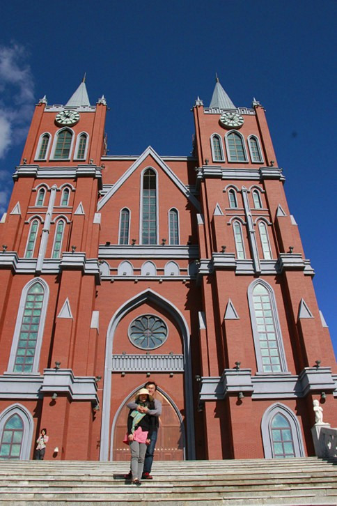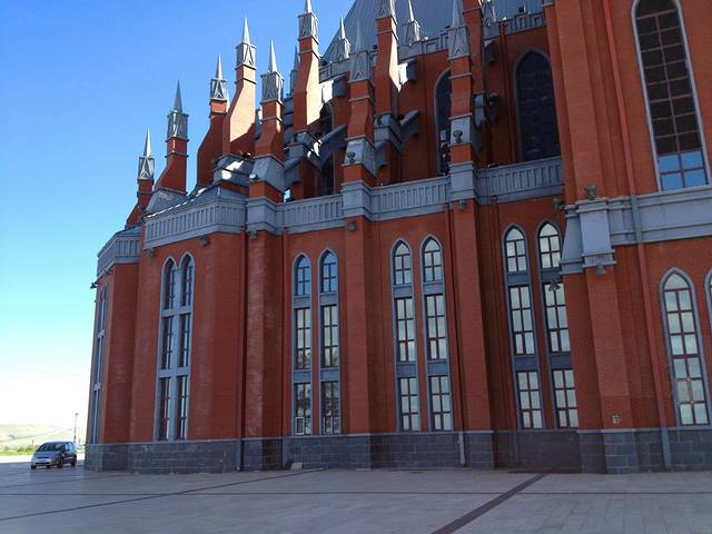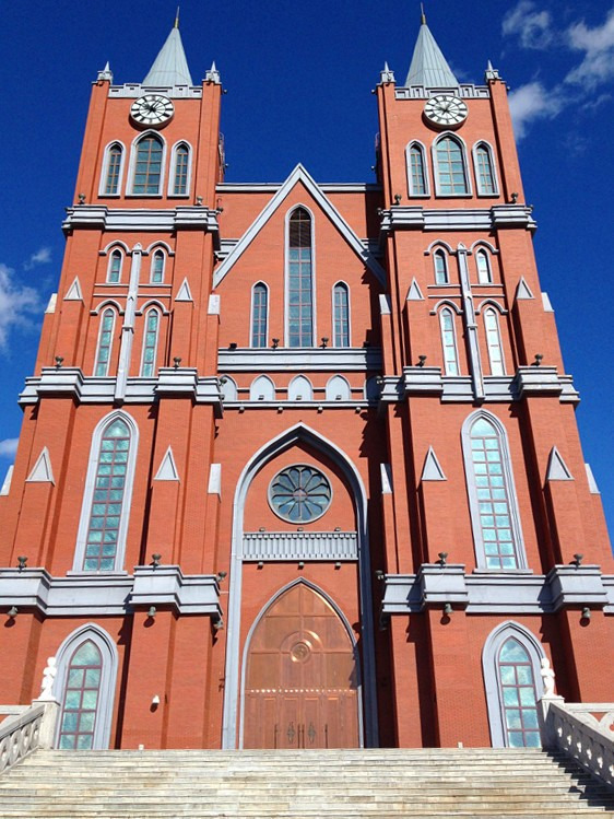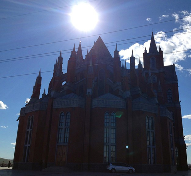 满洲里婚礼宫是目前亚洲最大的婚礼宫,典型的哥特式的建筑,我们在这里转了一圈,每一个门都紧锁着,站在这里,能够将整个满洲里市收入眼底。