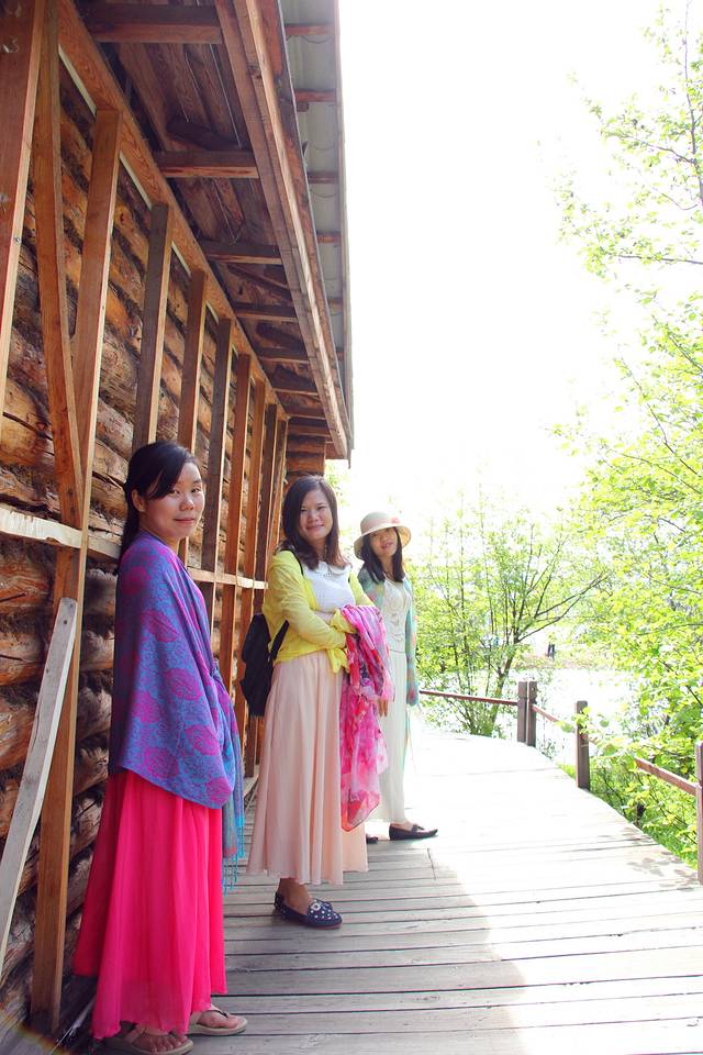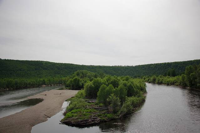 依依不舍地告别了奇乾,行了一段,老毕让我们下车徒步,待会儿在前面等着我们。前面是一座很长的大桥,河面平静宽广,两岸是整齐的树木。桥洞前面是一堆枯树,粗的,细的都有,堆成很大一堆,似乎已经有了些年头。不知道是保存树木的方法;还是上游漂下来,无法经过桥洞,所以堆积在了这里?