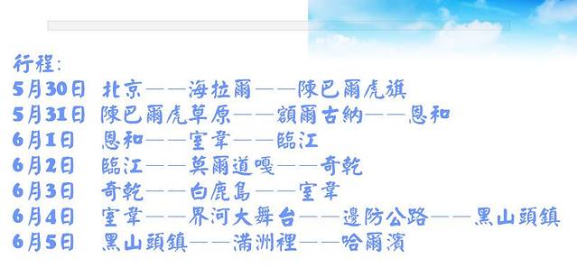 我们从31日开始出发,5日下午从满洲里前往哈尔滨,在草原上待了6天,走的是海拉尔—满洲里的北部环线,如果时间允许,建议多加两天走走呼伦贝尔南部换线。因为朋友没有到过哈尔滨,我们剩下的两天时间给了哈尔滨,后来大家都很后悔,纷纷表示那两天应该继续在草原上仰望蓝天白云,呼吸带着绿草鲜花的空气。