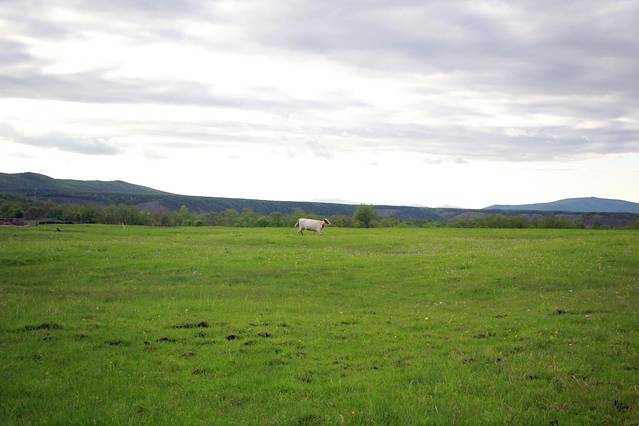 “快看左边,那群马和牛,还有天空上的飞鸟。”我被老毕的话震得瞬间清醒过来,远处昏沉的天空下是微秃的山,树木不均匀地生长着,近处是一片草地,上面马和牛,有的在悠闲吃着草,有些在躺着睡觉。它们的上空,不时有一群鸟飞过,俨然是一幅挂在客厅的画卷。老毕对我说:“小蔡可没有来过这边。”我得意洋洋,想着回去一定要狠狠向他炫耀。