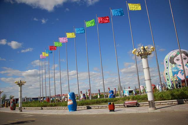 满洲里西邻蒙古国,北接俄罗斯,融合了中俄蒙三国风情,被称为“东亚之窗”。套娃广场有世界上最大的套娃,每一个都有极高的欣赏价值,广场上的套娃很多都是商店,出售各种土特产、俄罗斯商品……