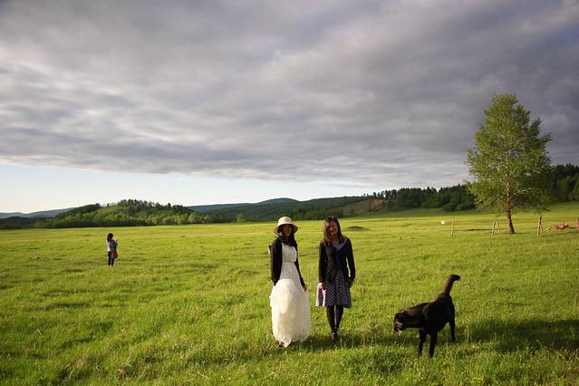 他瘦弱精悍,精力旺盛,风趣幽默,非常能“折腾”,眼睛特别尖锐,总是能够第一眼看到好玩的地方,然后拿着相机打开车门就招呼我们下车,撒开脚步就跑远了。他不断地发现只属于他一个人的地方,带着我们看了他发现的一处极其隐秘的蓝莓地,等到成熟的季节就可以带客人去摘了。他跟我们说很多内蒙的历史,说各景点的故事;他极其有摄影天赋,为我们拍了很多好看的照片;他给我们煮咖啡、做包子、烙饼……他的好,不只是他的客人能够体会。