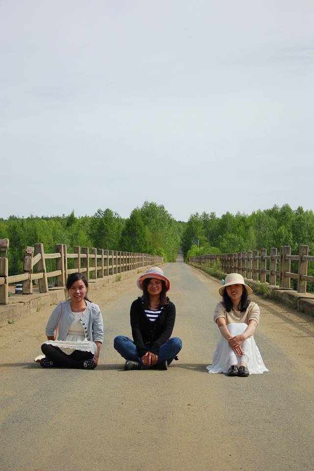 我们在桥上、马路上坐着、躺着拍照,还没等脱鞋下去感受清凉的河水,老毕就招呼我们继续前行了。