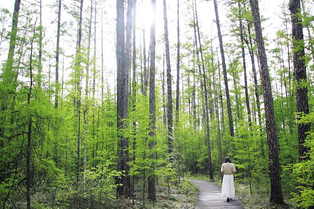 林区的道路开阔,车辆少,开得挺快,“我刚才好像看到了一个棕色的动物跑过去了”,花对我们说。老毕打趣到:“你看到的或许是鹿,看到鹿会有好运,而且的话还要在看见的当天找一个人结婚。我们车上的男士已经有主,所以只能跟我结婚了。”