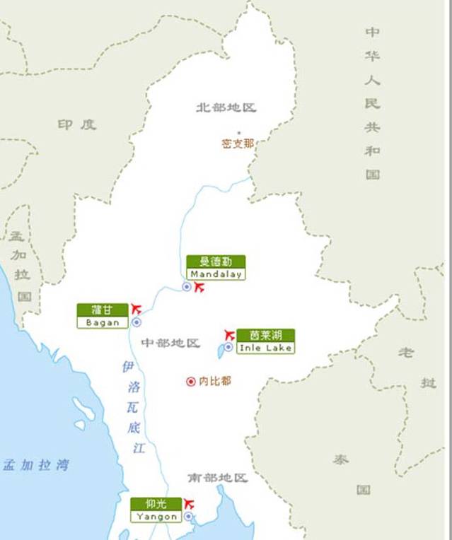 行程是逆时针走,先仰光,浦甘,曼德勒!莱茵湖本来要去,后来一听说很不值得,就取消了!