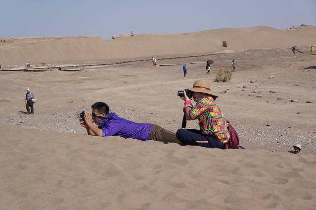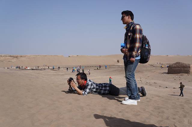 我们一边吃哈密瓜一边等待与丹妮汇合,可是却一直未能联系上,只好让她自生自灭了。消灭了哈密瓜,大家拍照的阵势就要摆起来了。一个拿着N个镜头的男子责备我们占据了那么好的位置却不好好利用,希望我们将所有在他镜头之内的东西都拿掉,我们动作慢点,他着急地主动移开了所有东西。