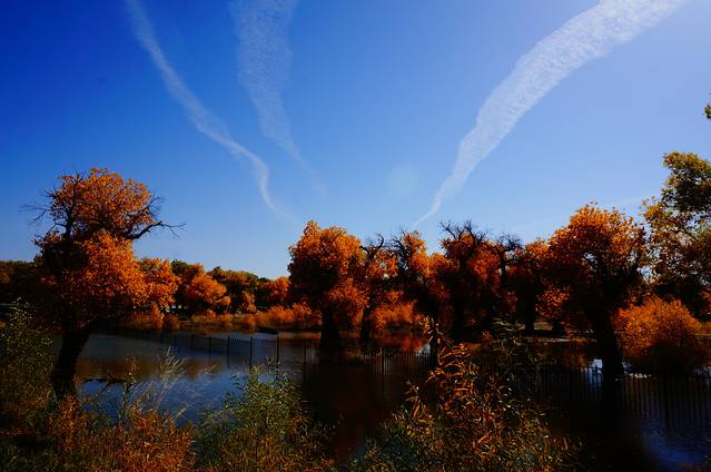第一次知道额济纳这个名字是在朋友分享的一篇关于中国好玩的旅游景点的文章上,在额济纳那段文字上,作者特别说明“走了这些地方,你会感叹很多美丽真的不是外国才有,我们中国多姿多彩”,这句话加上张艺谋《英雄》的胡杨让我对这个地方印象深刻,然而仅是内心深处的可望不可即。愚昧的我总是觉得“额济纳”、“喀纳斯”这些地方都是遥远神秘,近期之内是很难抵达的。于是我只能对着文章上美丽的胡杨憧憬,暗下决心几年之后再去。