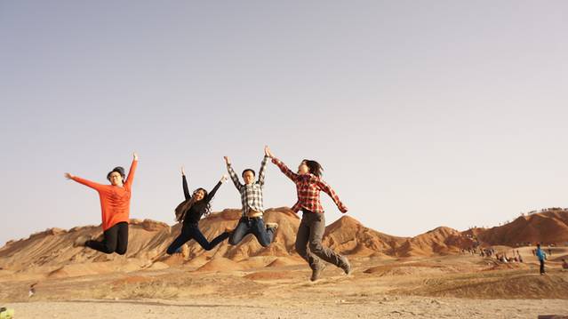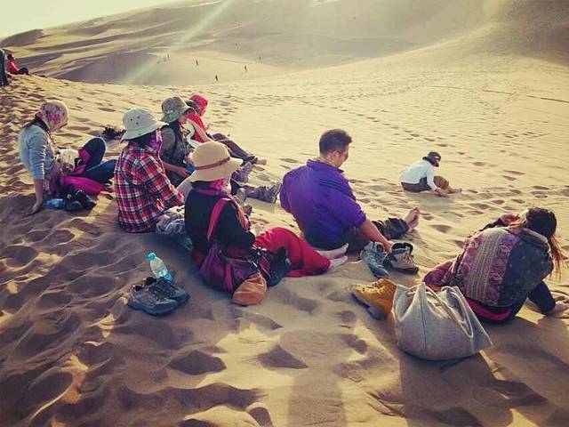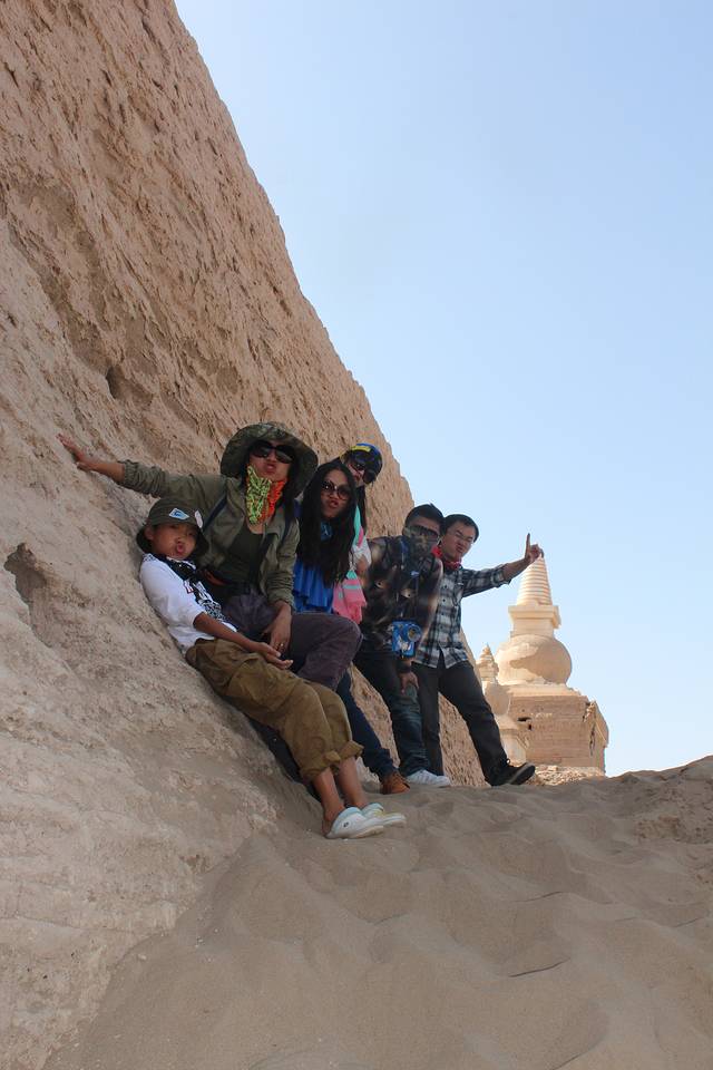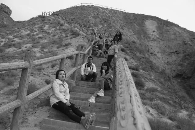 大家在观日出的途中失散了,最后我跟启鹏、志欣赏完了剩下的三个观景台,在路上还遇见了大队伍的队友们。志跟我们聊她的单位,聊上海的户口,我想起第一天见面的时候,原生质说志听不懂我说话。经过几天的相处,我想大家都已经习惯了我的口音。在三号景观台遇见了楼、丹妮和原生质,大部队计划十点钟从张掖出发到兰州,我们预备坐车回家庭旅馆。