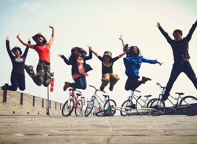 在城墙上不是非得要沉思,也可以犯囧、跳跃