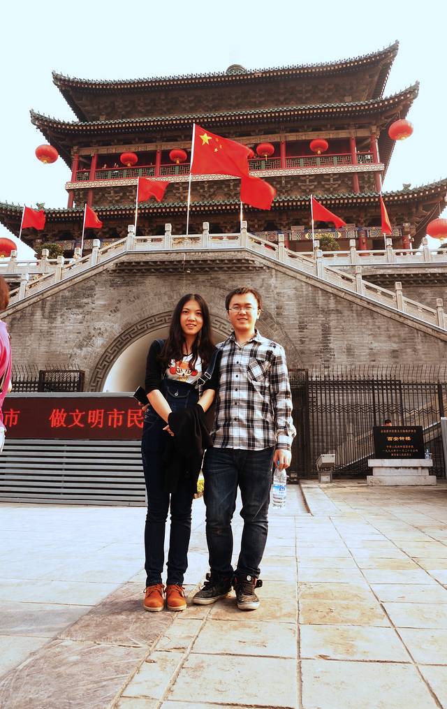 在鼓楼前面留下身影就足够了,不需要爬上去了