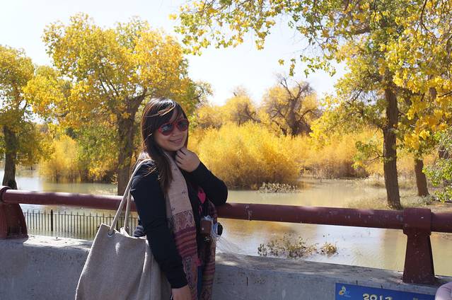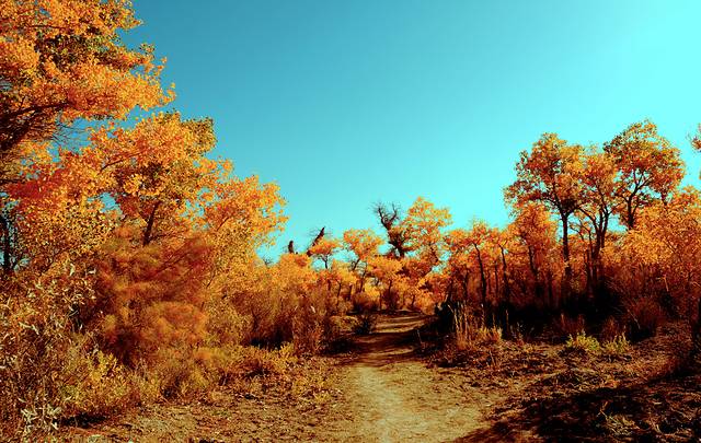 解决了午饭之后,沿着栈道逛二道桥,胡杨林这个时候已经躁动了起来,人来人往,有多少人从全国各地赶了过来,只是为了见一眼它的“容颜”?整片整片的黄色刺入眼膜,恨自己不是画家无法描绘它的美;恨自己不是摄影师无法展现它的色,恨自己不是诗人无法写出爱的赞歌……我唯一能做的就是,努力睁大眼睛,将所有景色都映入眼睛,融入脑海,刻入心中。