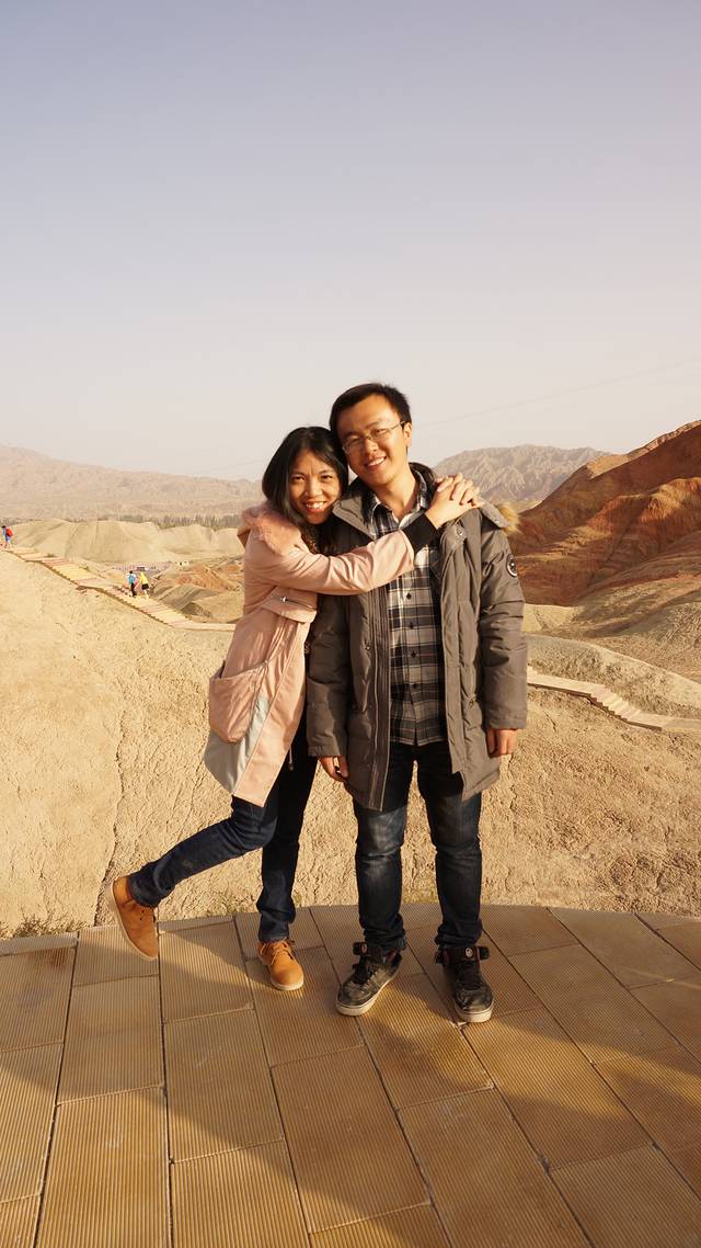 纵使身后五彩缤纷,也不及你我散发的色彩;纵然没有魁梧高大身躯,也缺不了给我的安全感。张掖七彩丹霞,留下一个暖暖!