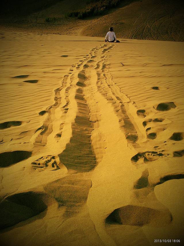 一笔一画写下印记,许多年之后我依然会记起,在额济纳,我们的名字混着细沙一起