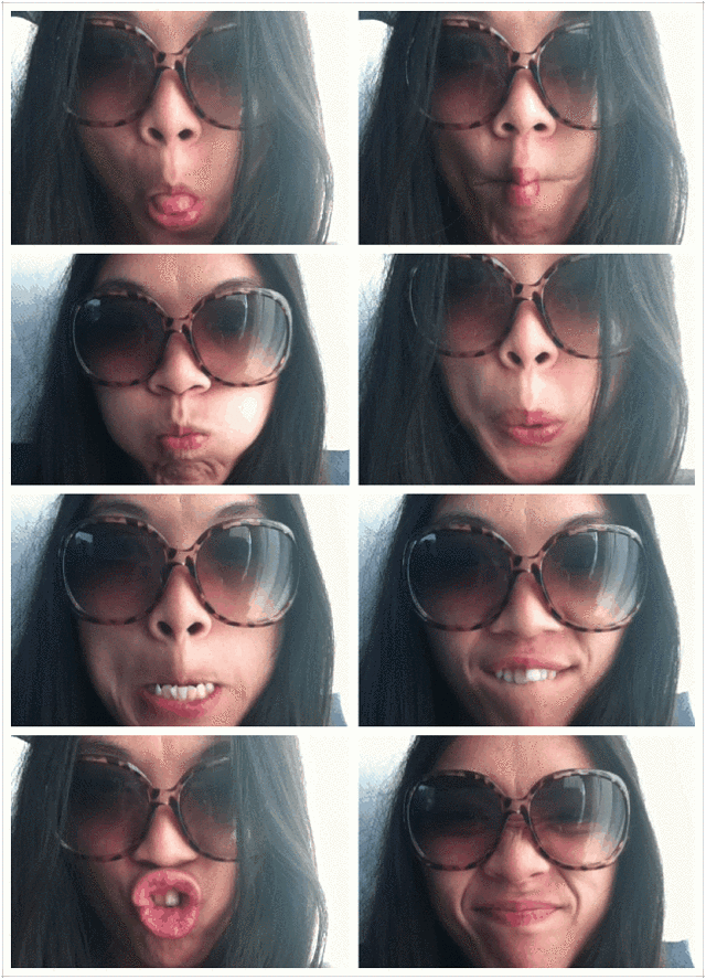 不断自黑给自己找乐子,左边下排那张因为很像丹妮在群里上传的一张照片,所以称为“丹妮嘴”