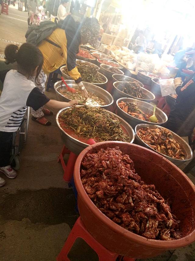 一盆一盆的泡菜.还有这里的小商贩真的会像电视机里那样.送你好多东西.买一个炒年糕她会给你吃点别的.喝点别的.人真心赞