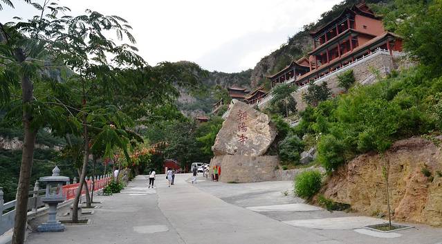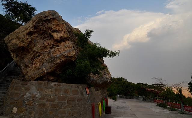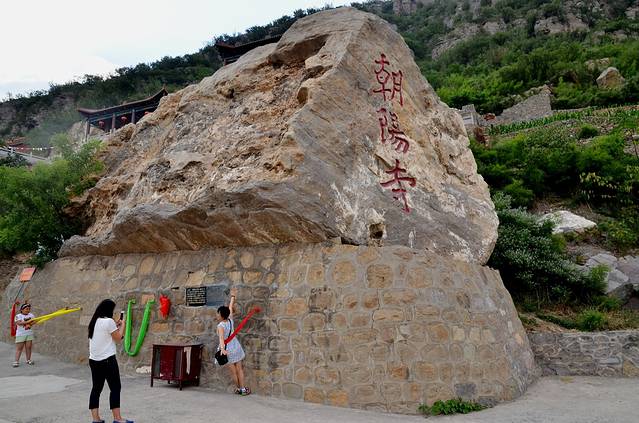 沿着甬道往前走不了多远,就会看见一块巨大的但很匪夷所思的大石头,上写:朝阳寺三个大字。奇怪这石头是怎么跑到这儿的?!