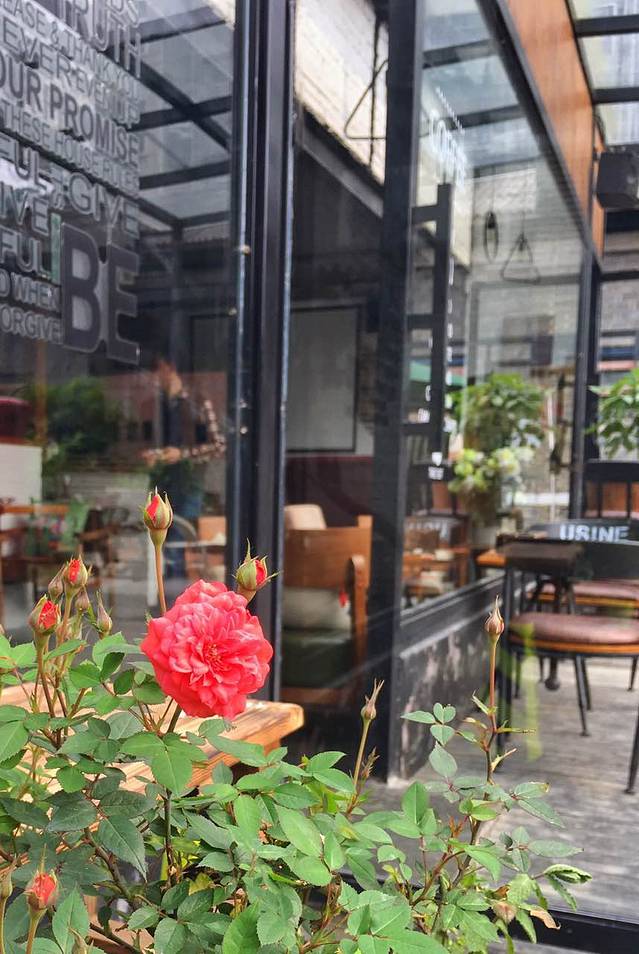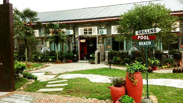 预订的客栈是前一天网上找的一家还顺眼的客栈——那一年精品主题客栈。考虑没有自驾,离景区近是重要考量标准。进得客栈,发现客栈很新,带院子,这是家庭、亲子游最理想的。自从上次丽江束河古镇住了次带院子的客栈,儿子还心心念念。这有点那丽江的味道,只是这款是工业风,白砖墙,黑钢架,欧美的配饰,满眼的花草,空旷倒也不冰冷,很有惊喜的小细节呢。