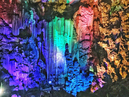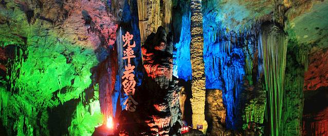上了兜率岛,进得溶洞,顿时清凉无比,整个世界都安静了,洞内怪石岭峋,钟乳石倒垂,形态各异别有一番趣味。可惜后来发现我手机拍出的照片没有一张能用,强迫症发作,百度了图片贴上。