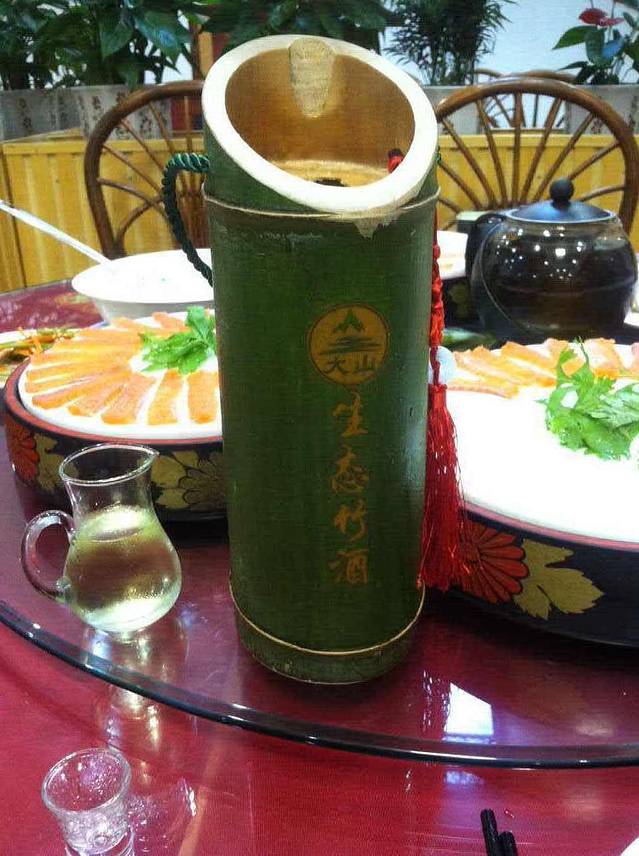 从不喝酒的老公不知道是受气氛感染还是想品当地生态特色,点了这个竹酒。颜色金黄、清冽淡香,不刺口。