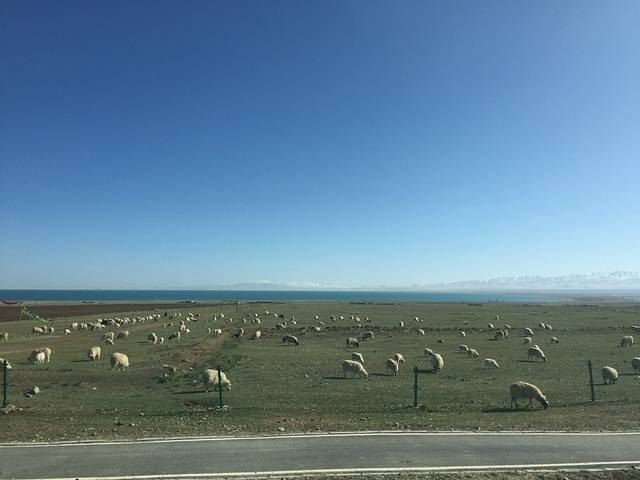 由青海湖环湖北线往南线开,路过金沙湾。