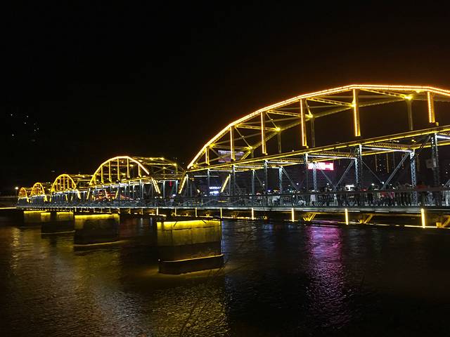 晚上无事便坐公交看看兰州的夜景,中山桥有公交站,交通方便,夜景不错,沿黄河都是步行路,十分适合晚上散步。兰州的公交都是1元。