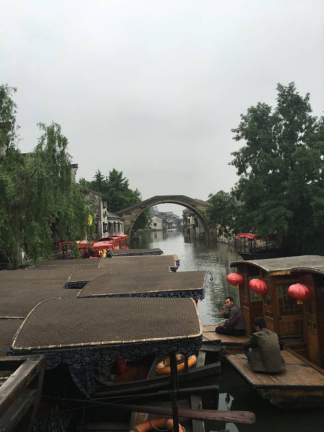 中午到达的话,建议买票后,直接景区河畔处觅食。人来人往,小船不时漂过,很是悠然。
