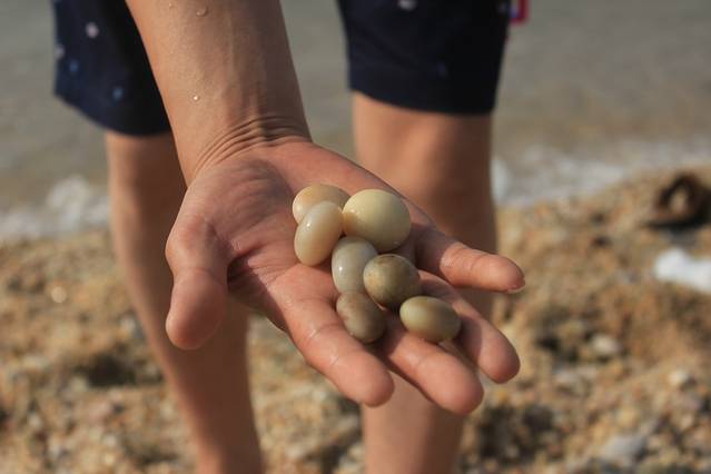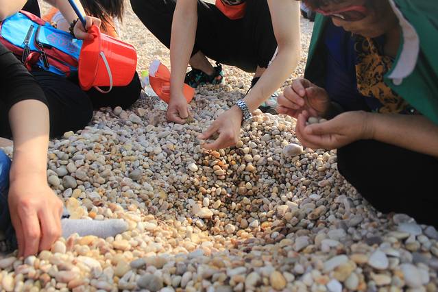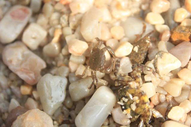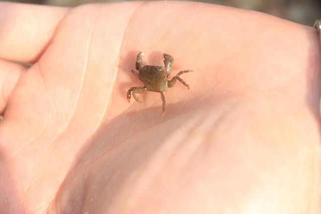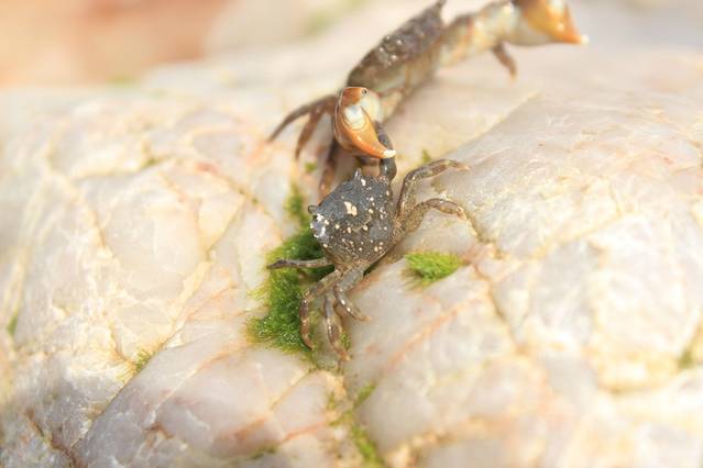 好多迷你的小螃蟹~太可爱~我们拿瓶子装了点海水还有石头,带回去啦~