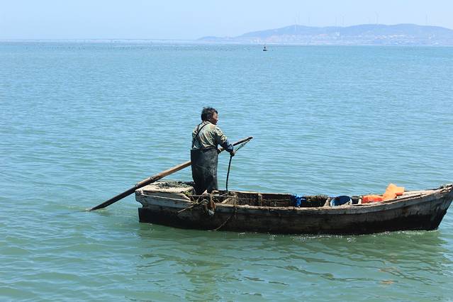 一个人来到烟台,直奔长岛。一台相机,一身复古长裙,一顶沙滩草帽,十足观光旅游客的模样。前往码头的公交车上,一对东北夫妇和我搭讪,几句闲聊,他们退休出来旅游将近一月,走到哪算哪,随遇而安。后来在船上又遇到了一对年轻的天津夫妻,大家挺投缘,于是我们便组了个“旅游团”。一起前往秀丽渔家乐!