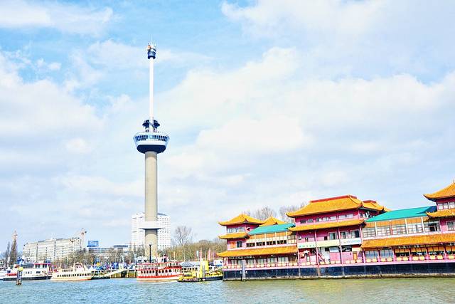 欧洲桅杆是鹿特丹最高的建筑,依傍在新马斯河畔,登上欧洲桅杆瞭望塔可以360度俯瞰整个鹿特丹城市建筑及新老港口。独有的观景电梯不仅垂直上升还会水平360度慢慢旋转,加上透明的地板给游客全方位的展示荷兰这座最具现代化的城市风貌,尤其夜景特别值得一看!
