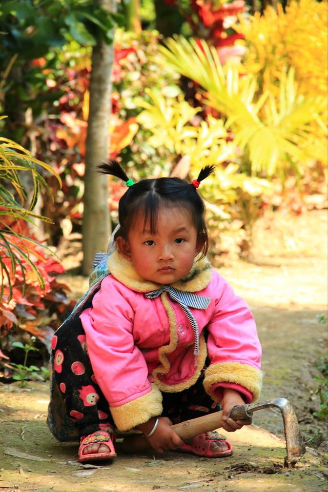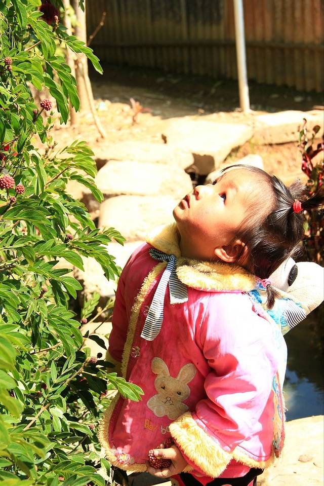 中午在途中休息点吃饭时。我遇到了这个两三岁的小姑娘,她很固执,不怕生,但也不与我亲近。我一直跟她说话,对她微笑,用尽手段去跟她接近,才换来她送我花花,送我果子,最后送我泥巴。然后她才愿意看我相机里我给她拍的照片。她没有对我说一句话,但是我知道她在最后接受了我。
