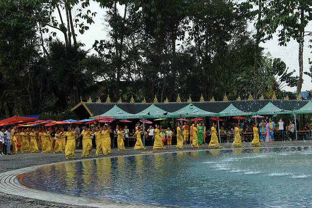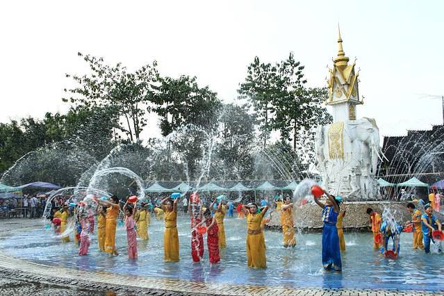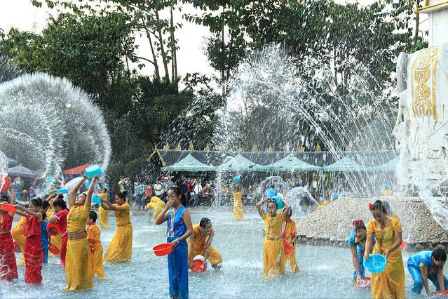 天天都是泼水节,可以租衣服到场地一起玩耍。我不想泼,只想看看,摆个pose照张相,都能被泼湿半边身子。是看我长得漂亮吧。O(∩_∩)O哈哈~