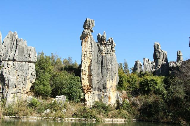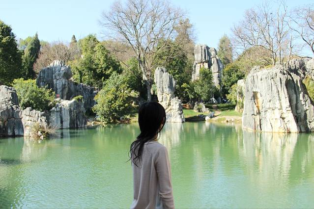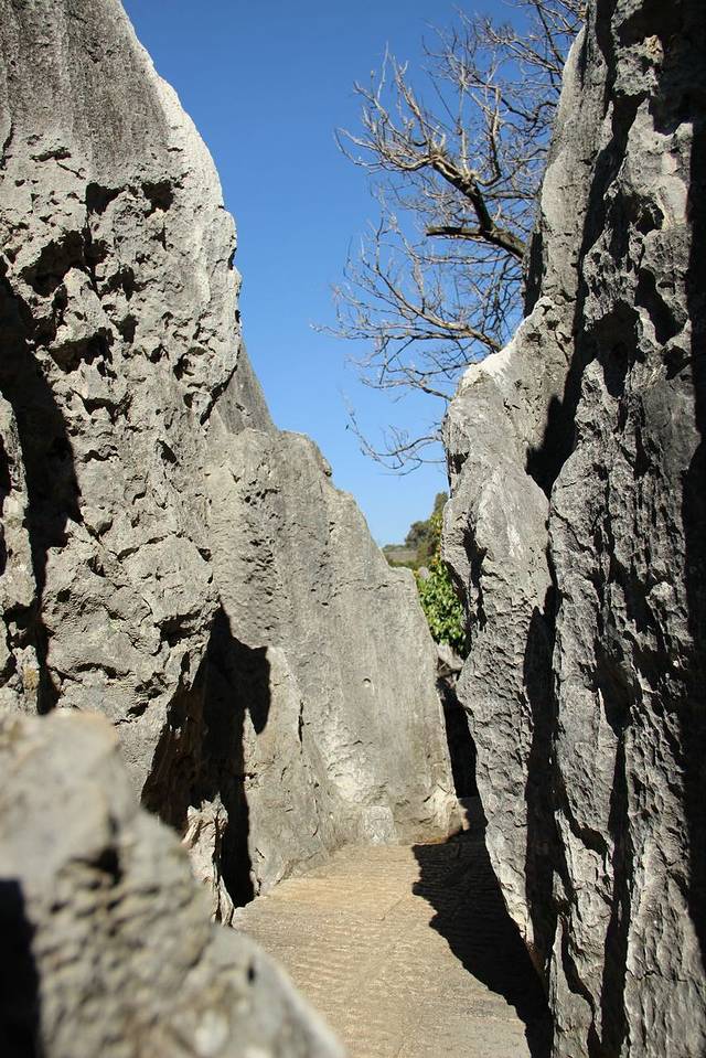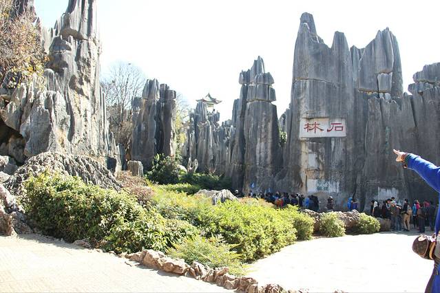 看,这里便是石林。位于大石林景区,这里的地貌特征更为明显。石头的材质是石灰岩。组合在一起成为中国的喀斯特地貌代表,是海水退去后形成的。其实嘛,它就是一堆石头。至少我是这么认为的。
