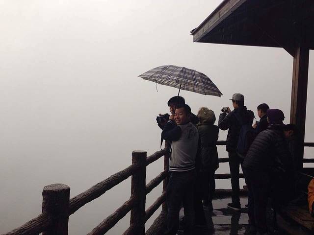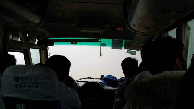 在开往老虎嘴的时候,我们车上的小伙伴就被司机师傅的技术惊呆了。在前方可视度不足十米,从车内望向车外只剩下白茫茫一片的盘山路上,师傅愣是开了两个多小时把我们送到了老虎嘴景区。想想也是醉了!