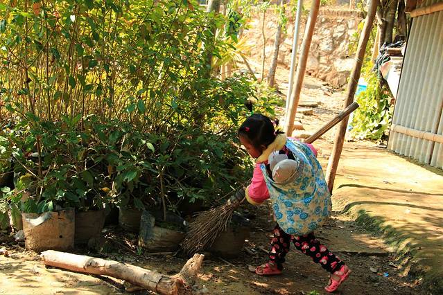 在下面的这个宅子里,我们吃了一顿丰盛的午餐,村寨很小,然而小孩子们的欢乐永远不会受时间、地域和气候的影响。那么真实!