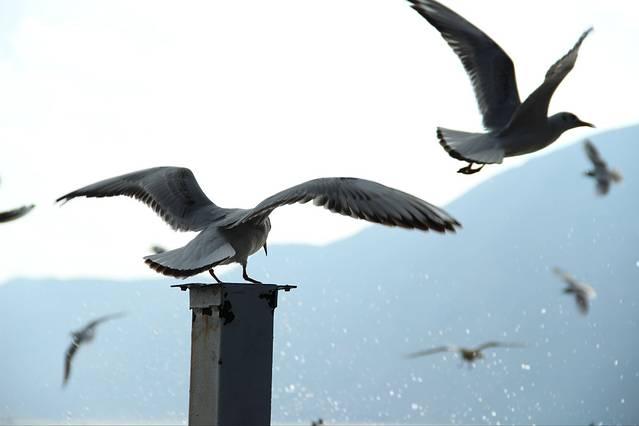 民族村游览完毕后,就可以坐一路车到海埂公园喂红嘴鸥。